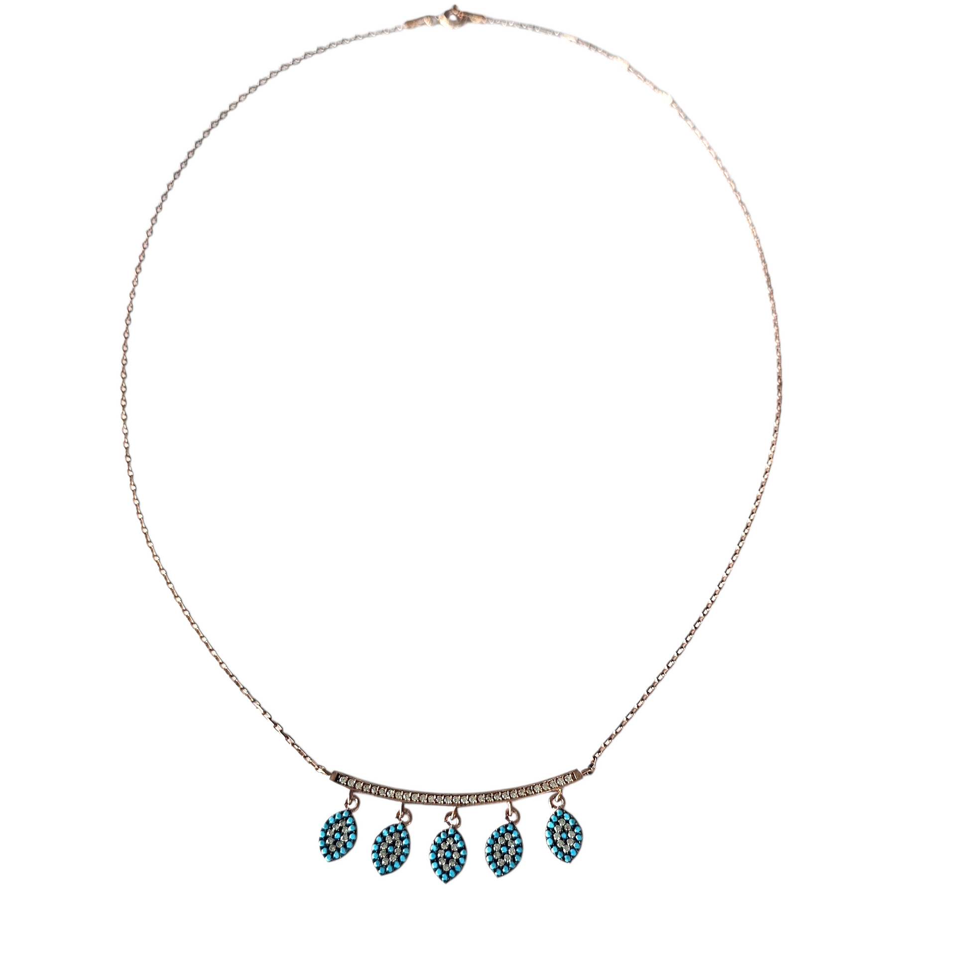 Collar plata 925 enchapado en oro rosado de 18 quilates, ciecones y turquesas.